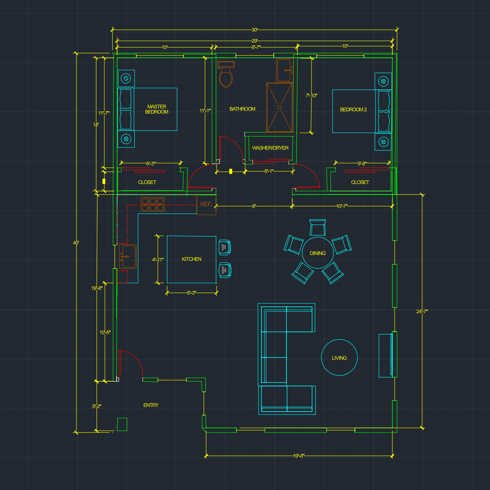 I’m currently learning to create professional interior floor plans using AutoCAD. This is my first project I created by leveraging YouTube tutorials. I also recently completed a 9 week online CAD course through The New School.I have created drawings of interior elevations, reflected ceiling plans, furniture plans, as well as dimensioning and annotating.